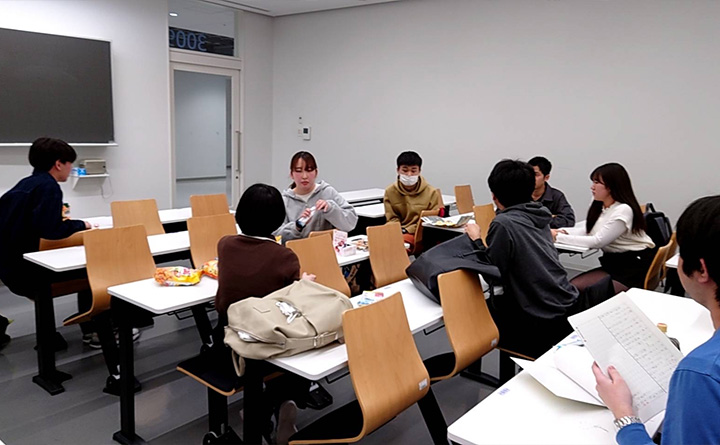 お菓子を持ち寄り、雑談を交えながらも、次の取材について真剣に話し合っています。