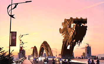 ドラゴンの形のロン橋 ミーケビーチは白い砂浜が美しいダナン最大のビーチです。訪れるならロン橋を渡ってミーケビーチまで歩くコースがおすすめ。ロン橋は別名「ドラゴンブリッジ」と呼ばれ、週末の夜には口から火と水が吹き出すショーも行われます。