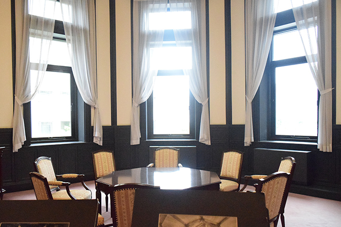 八角形の形状が珍しい特別室は、現在は洋風のデザインになっているものの、開館当時は「和」の趣を感じさせる工夫が施されていたといいます。