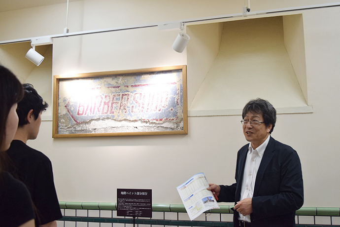 最後は、まだ一般未公開の地下フロアへ。1、2階部分とは異なり一見するとやや簡素な雰囲気ですが、壁からはマッカーサー率いるGHQの管理下にあった時代の「理容室の看板」が発見されるなど、こちらも歴史的に貴重な空間となっています。